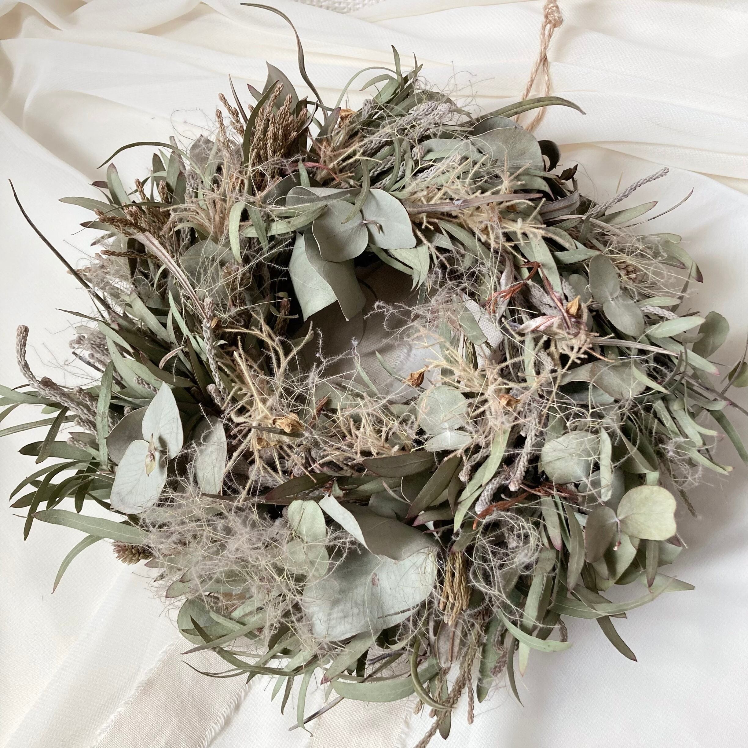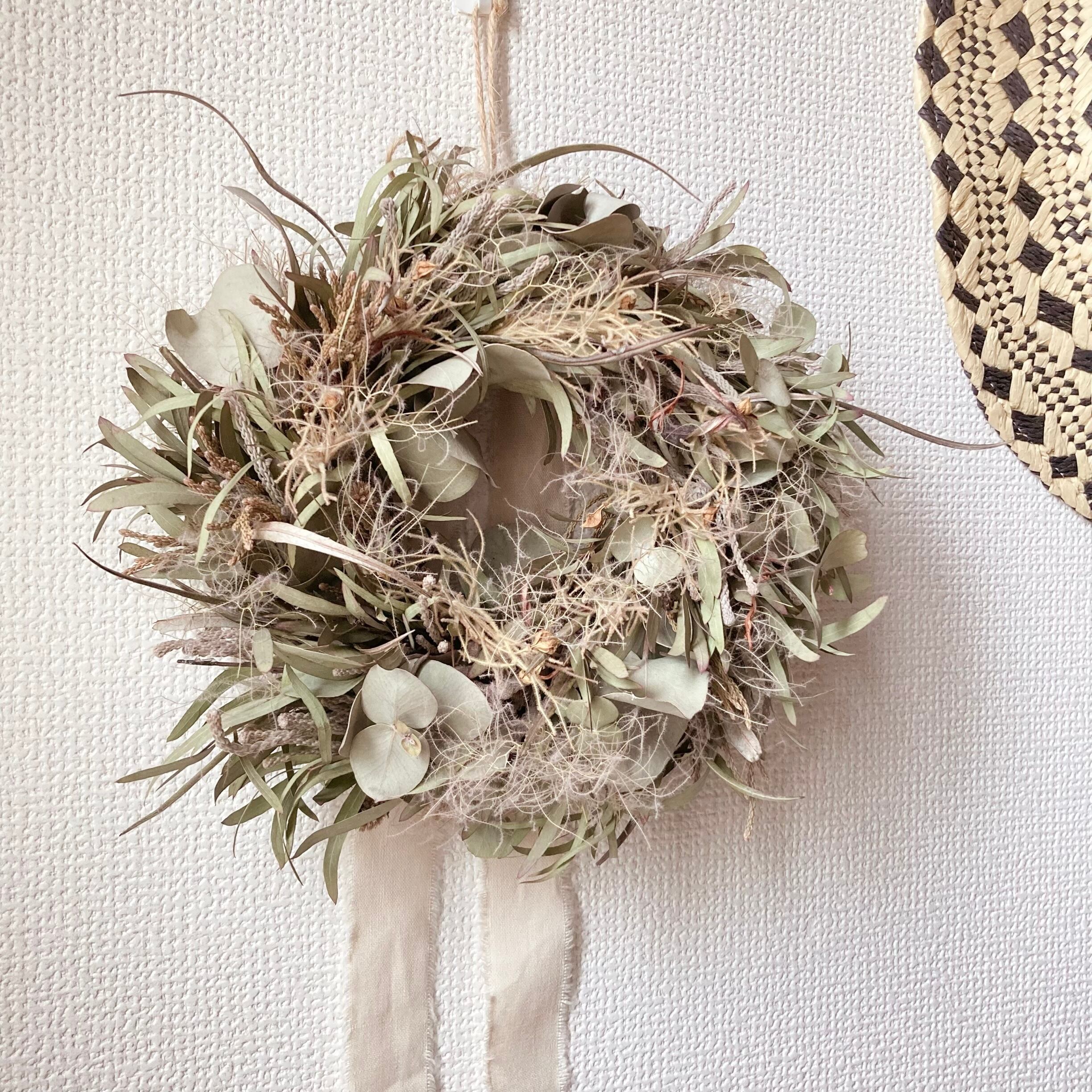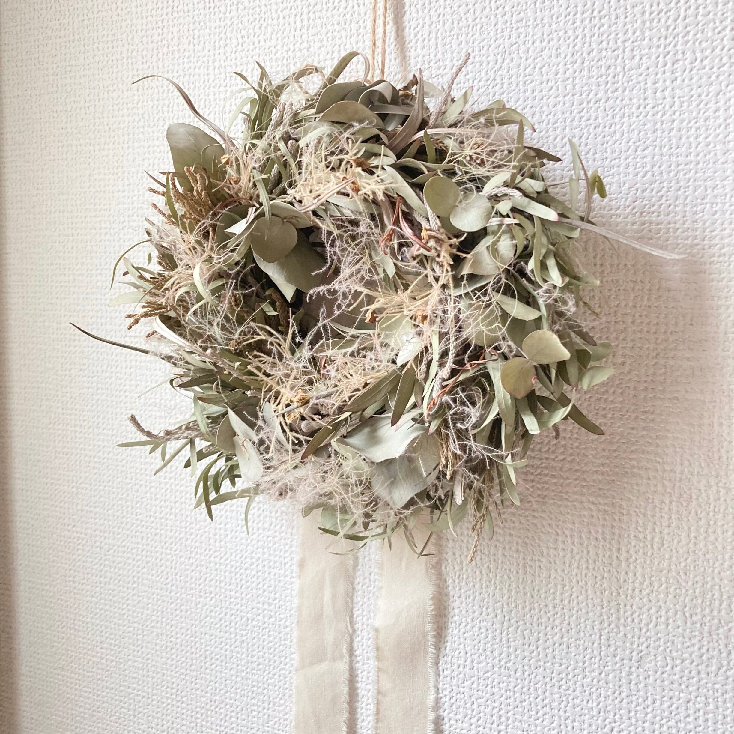 使用花材:ユーカリ、シルバーブルニア、グレビレアアイバンホー、スモークツリー、ガルガフォレスティ
